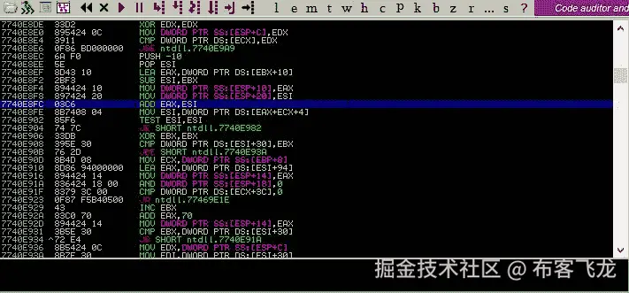 - 现在使用有效载荷在调试器中运行应用程序,并检查 ESP 寄存器后的