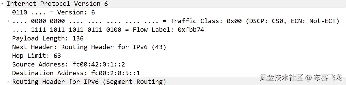 如果可能,Wireshark 将使用适当的快捷方式,如目的地址所示。IPv6 快捷方式删除前导零,并折叠两个或更多包含连续零的块。