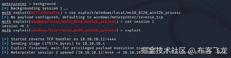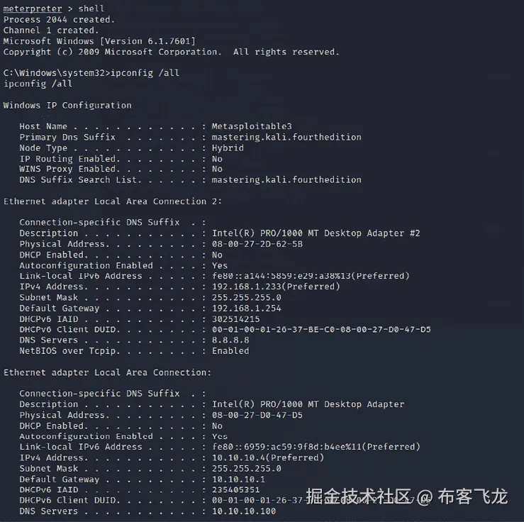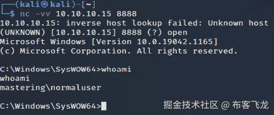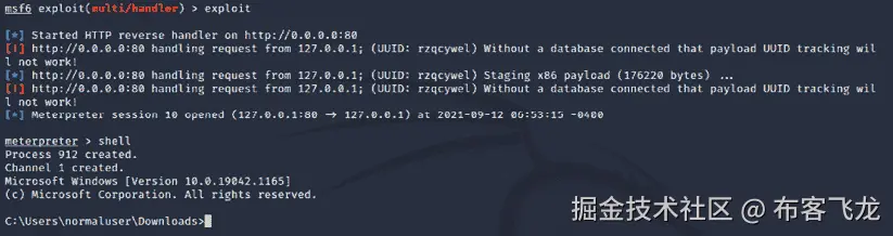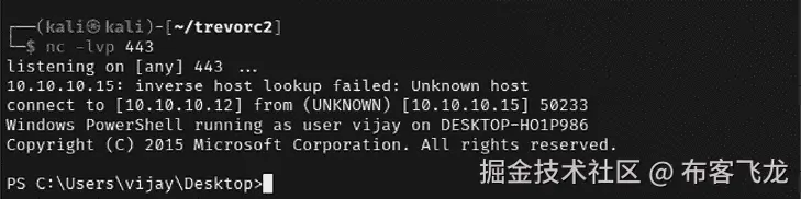 一旦有效负载在目标上执行,攻击者可以通过在 Kali Linux 终端运行
