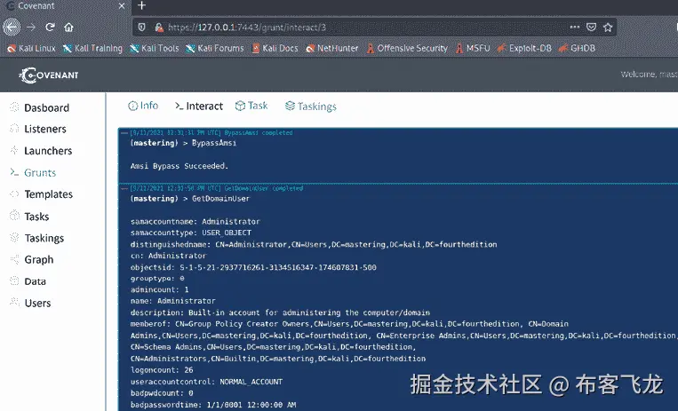 图 13.33:成功将利用工具植入目标,并实现域前端攻击