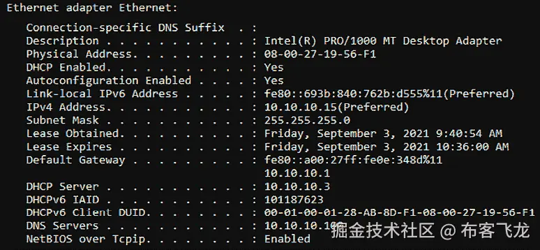 图 9.2:Kali Linux 上带有内部 DNS 条目的 DHCP 信息