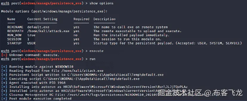 为了促进利用,大多数框架都集成了使攻击稍微隐秘的功能。Metasploit 框架允许您手动设置每个漏洞的规避因素,确定哪些因素(如加密、端口号、文件名等)可能难以识别,并且会根据每个特定 ID 进行更改。Metasploit 框架还允许将目标和攻击系统之间的通信加密(windows/meterpreter/reverse_tcp_rc4有效载荷),从而使漏洞利用载荷更难被检测。
