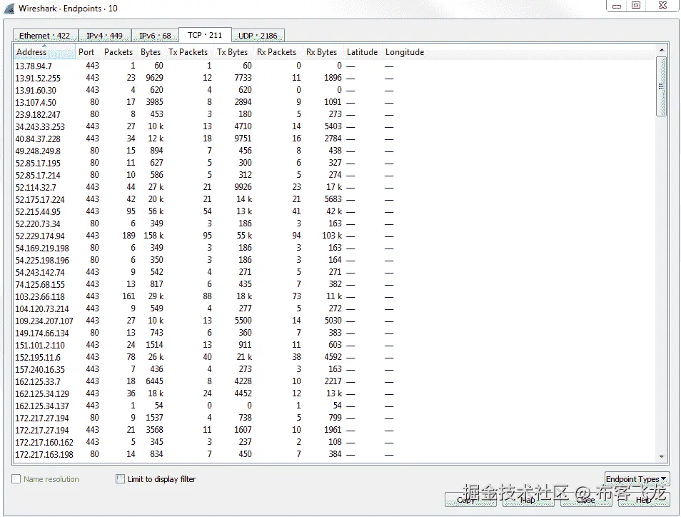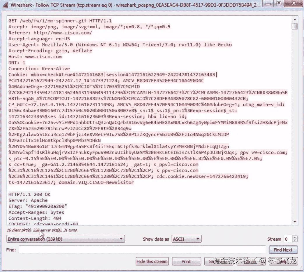 你可以看到流程图看起来有点复杂。您仍然可以从中获得一些相同的信息,但是由于它是针对每个包的,所以查看起来更加困难。使用另一个流程图总是更好。尽管我们可以通过从 Show 中选择选项 displayed packets 来解决这个问题,但它仍然是针对每个数据包的。所以如果你只是在说基本的连通性或者基本的流程,另一个流程图更好。如果你需要更多的细节,你可以看看这里。