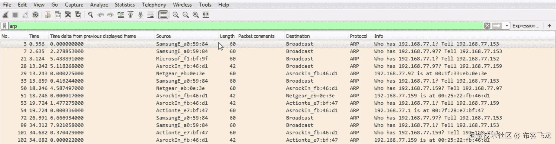 wireshark并点击 Search,您将看到名称或描述中包含 Wireshark 的所有内容现在都显示在包列表中: