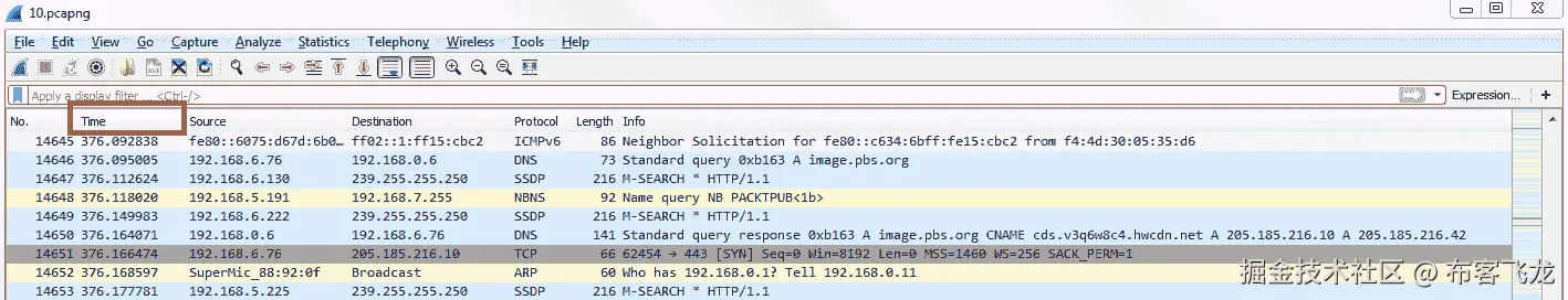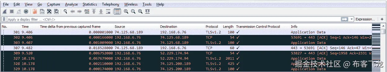 我们在前面的捕获中看到的是一些连接,然后是一些实际发送的数据流量。这实际上是一个非常好的捕获,因为它向我们展示了一个问题和一个解决方案。