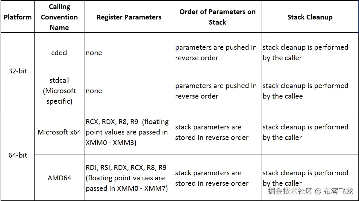 首先,让我们看看本章中我们将涵盖的调用约定: