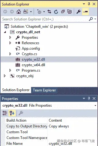 然而,尽管如果我们实现前面的类并尝试在代码中使用它,它会顺利编译,但我们仍然无法实际运行它。这是因为我们需要根据所选平台提供 DLL 或共享对象。提供库的最简单方法是将它们复制到解决方案文件夹中,并告诉 IDE(Visual Studio 或 Monodevelop)正确处理它们。