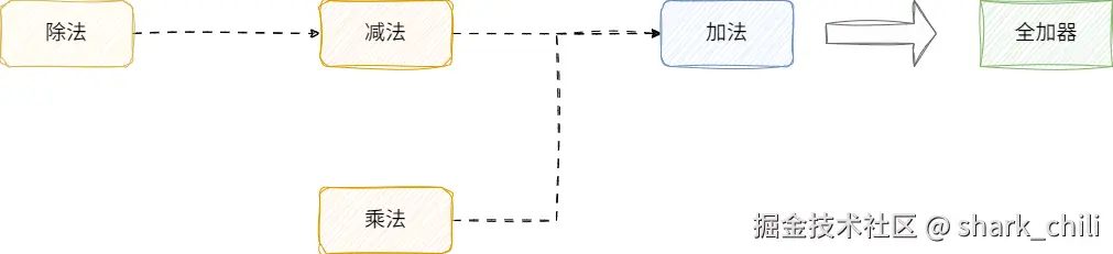通过这种运算,我们推理出全加法器,在此基础上,串联无数个全加法器生成更高进位的加法运算。