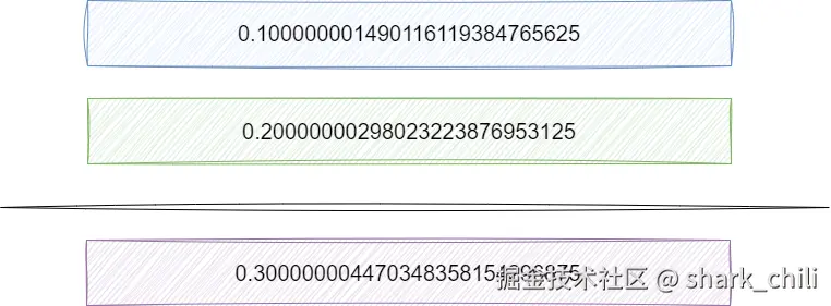 由上面的篇幅,我们大概就知道了0.1+0.2为什么不等于0.3了,我们不妨计算一下 就用float表示 0.1可得