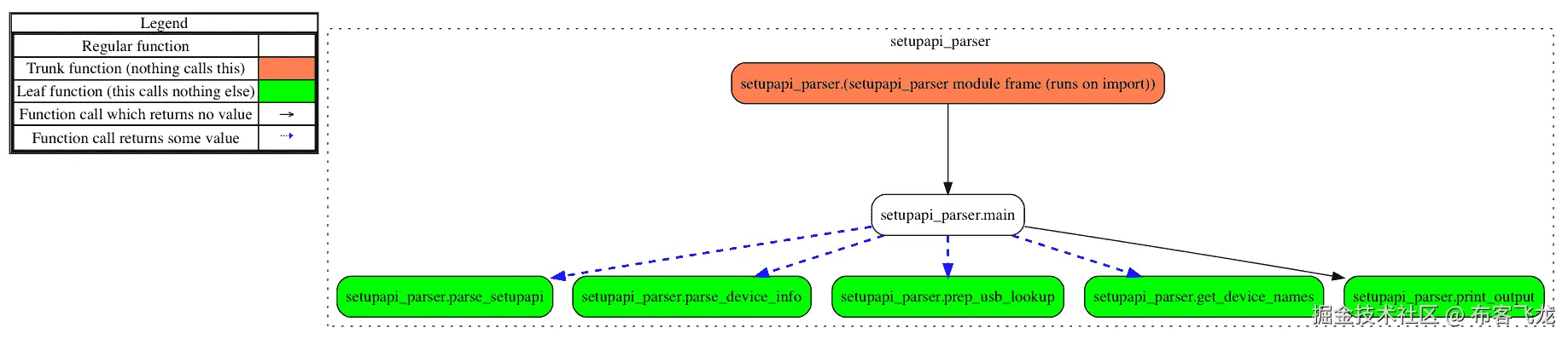 初始化后,我们将从parse_setup_api()函数传递的device_info值按单个反斜杠进行分割,作为分隔符。为了将其作为字面意义的反斜杠字符进行解释,我们需要使用另一个反斜杠来转义它。第 107 行的分割将设备类型段与包含 VID 和 PID 信息的字符串分开。在此分割之后,我们检查设备类型条目是否反映了 USB 设备。如果设备不是 USB 设备,我们返回None,以确保该设备不被此函数进一步处理,也避免我们为该设备解析 VID 或 PID。通过添加此逻辑,我们避免了花费额外时间和资源处理不相关的条目: