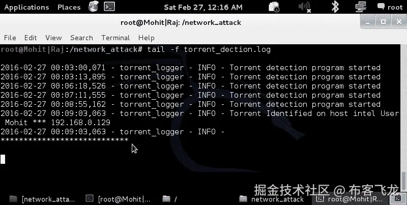 代码名称为dhcp_starvation.py。代码的工作分为两部分。首先,攻击者机器发送发现数据包,然后 DHCP 服务器发送具有给定 IP 的 DHCP 提供数据包。在下一部分中,我们的代码提取给定的 IP 和服务器 IP,制作名为 DHCP 请求的新数据包,并将其发送到 DHCP 服务器。在运行程序之前,请检查 DHCP 服务器中的 DHCP 租约文件,该文件位于**\var\lib\dhcpd\dhcpd.lease**: