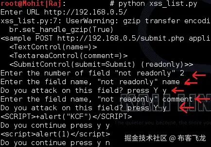 你可以在前面的截图中看到代码的输出。当我按下y键时,代码发送了 XSS 攻击。