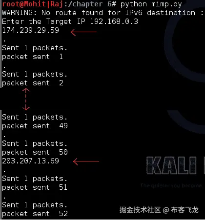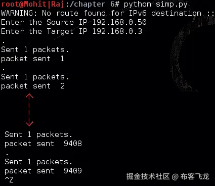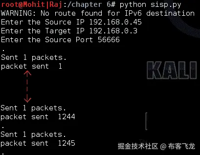 到目前为止,您已经看到了 ARP 欺骗的实现。现在,让我们了解一种称为网络分离攻击的攻击。它的概念与 ARP 缓存中毒相同。