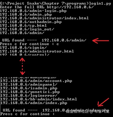 您应该能够理解程序直到for循环。pass_exp变量表示基于逻辑的密码攻击列表。user1和pass1变量要求用户输入用户名和密码字段,如表单所示。flag=0变量使while循环继续,p变量初始化为0。在while循环内,即br.select_form(nr=0)语句,选择 HTML 表单一。实际上,这段代码是基于这样的假设,即当您转到登录屏幕时,它将在第一个 HTML 表单中包含登录用户名和密码字段。br.form[user1] = 'admin'语句存储用户名;实际上,我使用它使代码简单易懂。br.form[pass1] = pass_exp[p]语句显示将pass_exp列表的元素传递给br.form[pass1]。接下来,for循环部分将输出转换为字符串格式。我们如何知道密码是否已成功接受?您已经看到,成功登录到页面后,您将在页面上找到注销或退出选项。我在名为list的列表中存储了不同的注销和退出选项的组合。data1 = data.lower()语句将所有数据更改为小写。这将使在数据中查找注销或退出术语变得容易。现在,让我们看看代码: