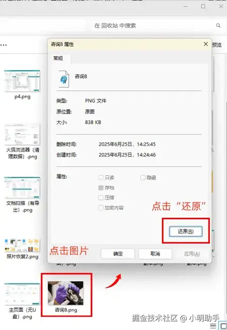 步骤2: 在里面找到需要恢复的误删照片,点击后在窗口点击“还原”。