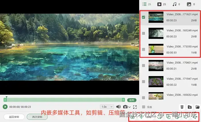 它有着丰富的多媒体工具,录制完后可以直接进行视频剪切、压缩、合并,这款免费好用的录屏软件还能更改视频格式,支持输出MP4、AVI、MP3等多种格式。