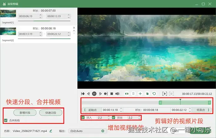 步骤3:当录制任务完成并停止后,还可以对视频进行后期加工,例如在不同场景切换处插入转场效果 (如淡入淡出) ,或是裁剪多余片段等。