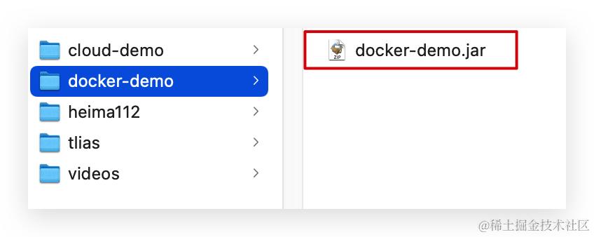 步骤2:拷贝课前资料中的docker-demo.jar文件到docker-demo这个目录