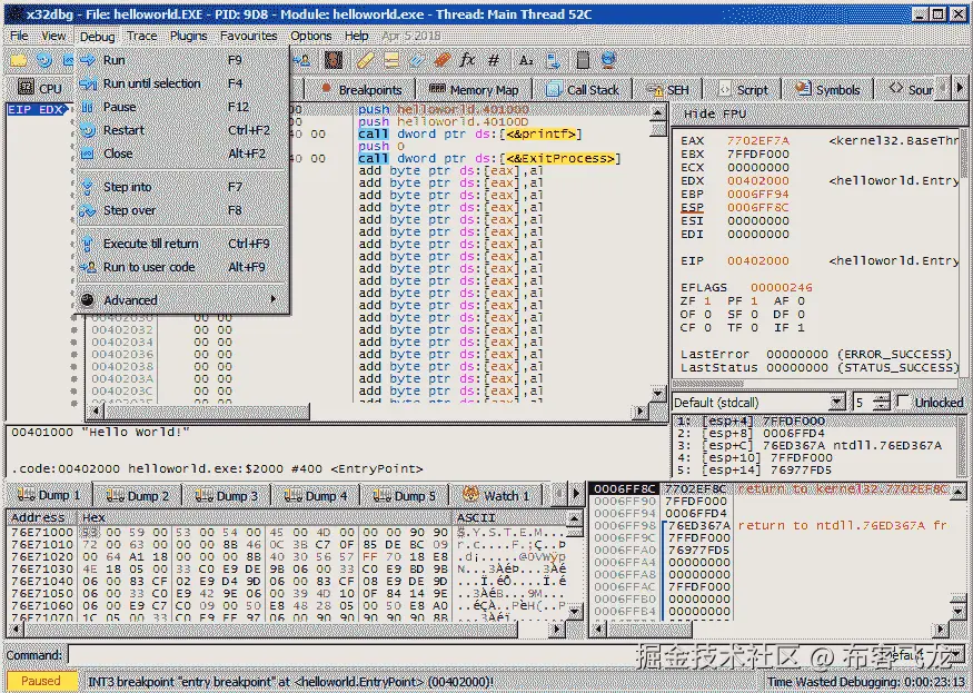 x86dbg: 这是一款 Windows 用户模式下的调试器。它是开源的,能够调试 32 位和 64 位程序,且可以接受用户编写的插件。源代码可以从**