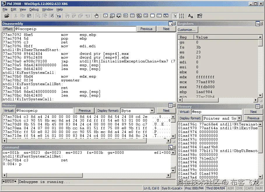 Windbg: 由微软开发的调试器。界面相当简单,但可以配置为显示逆向工程师需要的各种信息。它能够被设置为远程调试设备驱动程序、内核级软件,甚至整个 Microsoft 操作系统。