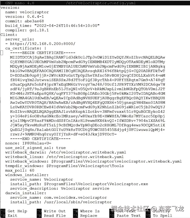 /etc目录的velociraptor.config.yaml文件:sudo nano /etc/velociraptor.config.yaml -