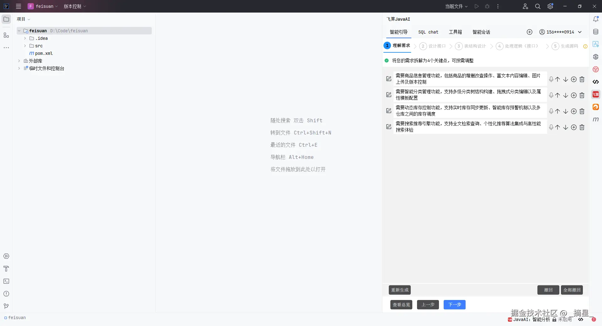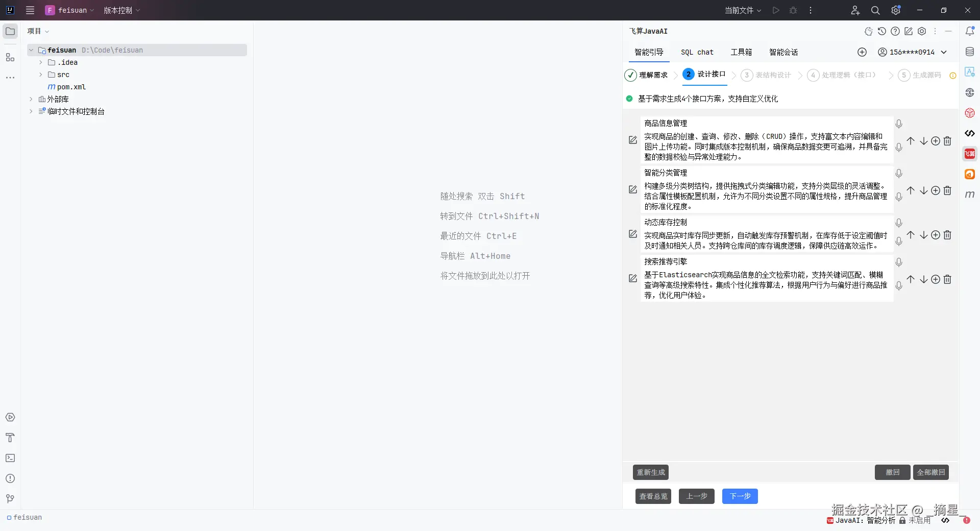 AI辅助开发带来的效率提升令人惊喜。飞算JavaAI能够准确理解业务需求,生成的代码结构规范,连Swagger接口文档都自动生成完整。但作为资深开发者,我认为AI生成的代码仍需人工优化,特别是在异常处理、日志记录等关键环节需要加入业务理解。