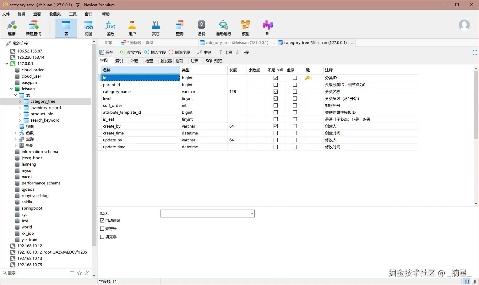 id BIGINT PRIMARY KEY AUTO_INCREMENT COMMENT '分类ID',