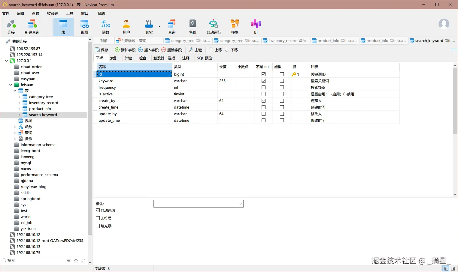 id BIGINT PRIMARY KEY AUTO_INCREMENT COMMENT '关键词ID',