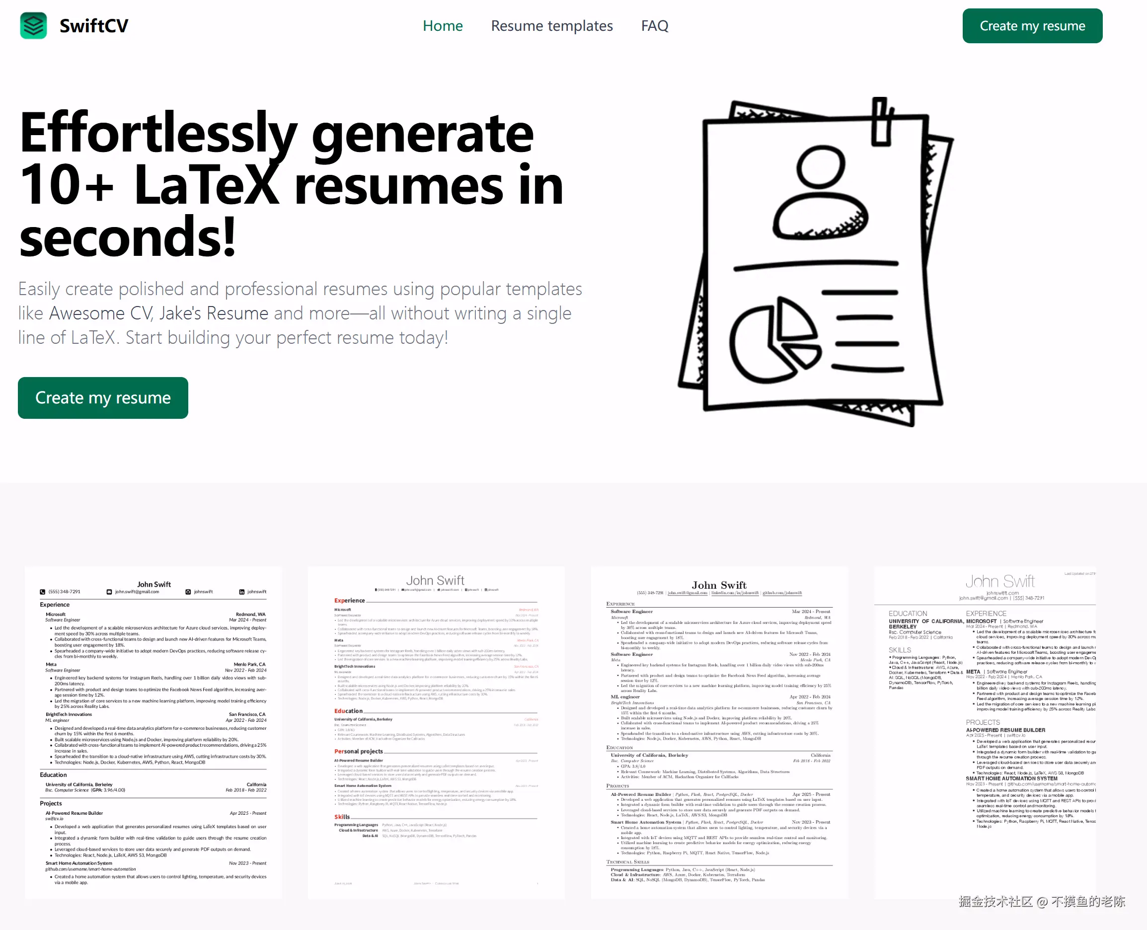SwiftCV是一款简历生成工具,可以根据用户填写的信息,使用流行的LaTeX模板生成10多种不同的简历,方便软件工程师尝试不同风格的简历。