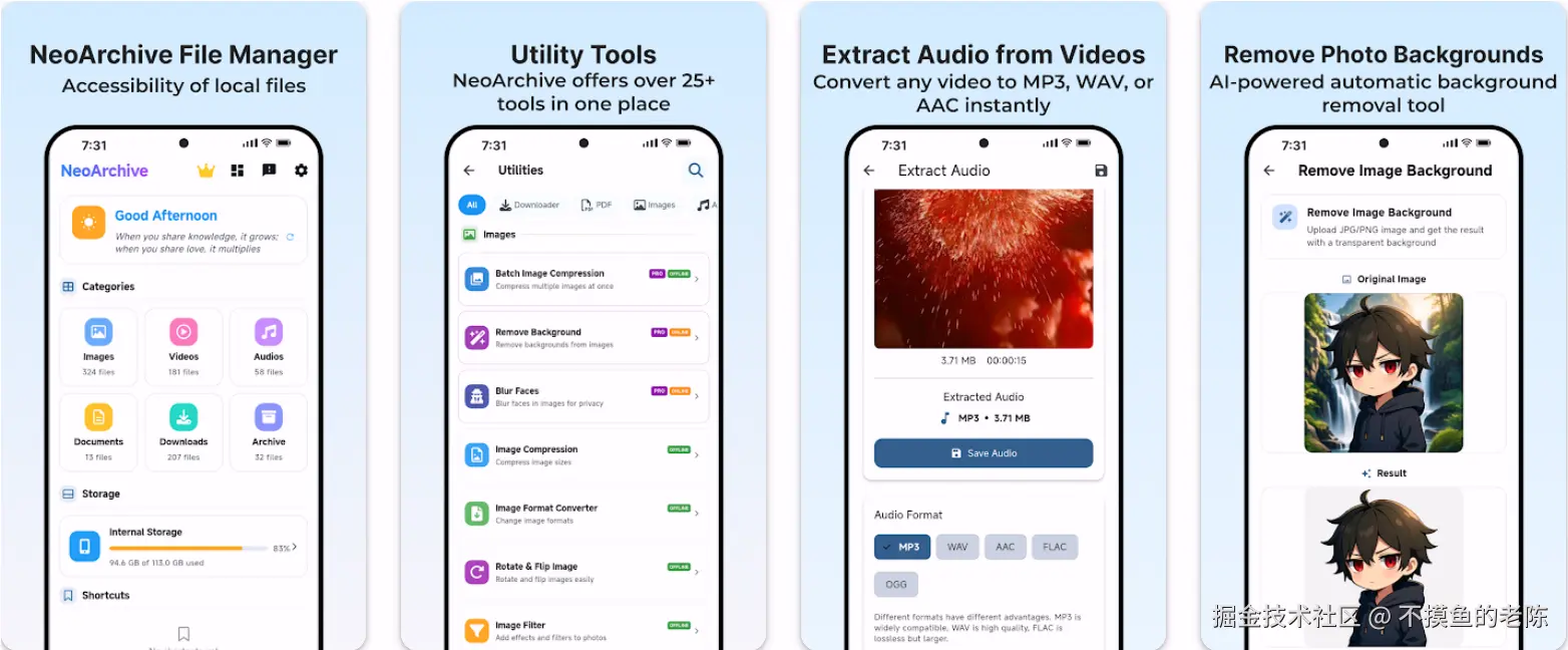 NeoArchive是一款轻量级安卓应用,集成25+文件、媒体、PDF和生产力工具,支持离线使用并注重隐私。