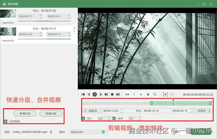 备注:如果需要进一步优化视频(如添加特效、合并片段等),就点击预览窗口中的“高级剪辑”按钮,进入专业剪辑界面。