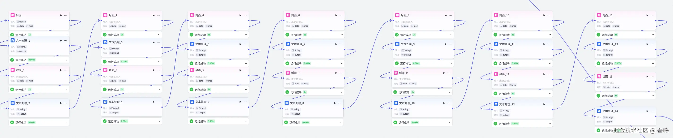 这一部分用于生成卡点视频开头的多张书籍封面图跳转的动态效果,这里面的图片你可以根据你自己的需求替换,只需要把画板中的图片替换即可,文本处理节点是为了把图片变成可访问的url地址。
