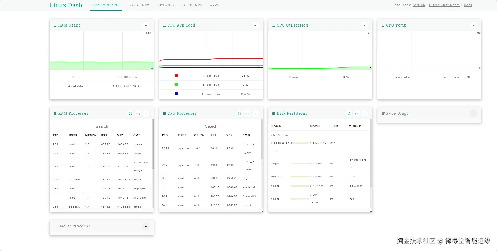 2、完成使用Linux-dash实现系统可视化监控;