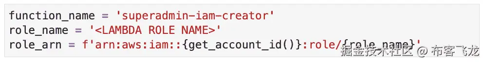 定位以下代码块(在 设置创建具有管理员访问权限的 Lambda 函数 下):