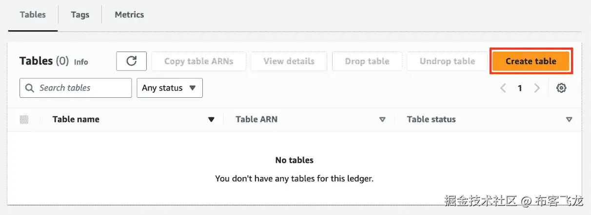 qldb并从结果列表中选择Amazon QLDB来查看 QLDB 数据库资源列表(如图 7.52所示):图 7.52 – 导航到 Amazon QLDB 控制台