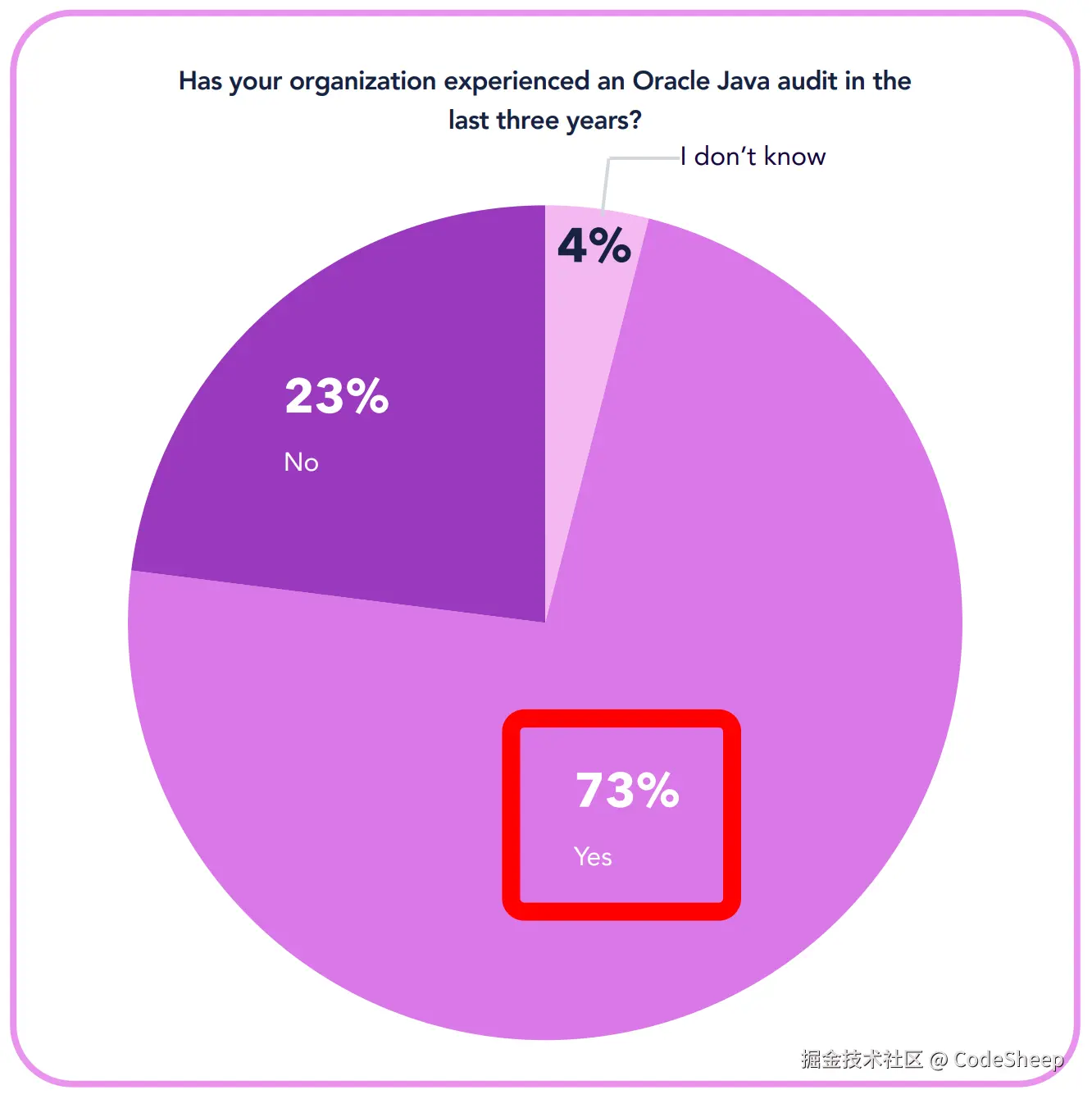 报告数据显示,在过去的三年中,受访的企业里有高达 73% 的企业遇到过 Oracle 所发起的 Java 许可和合规性审计。