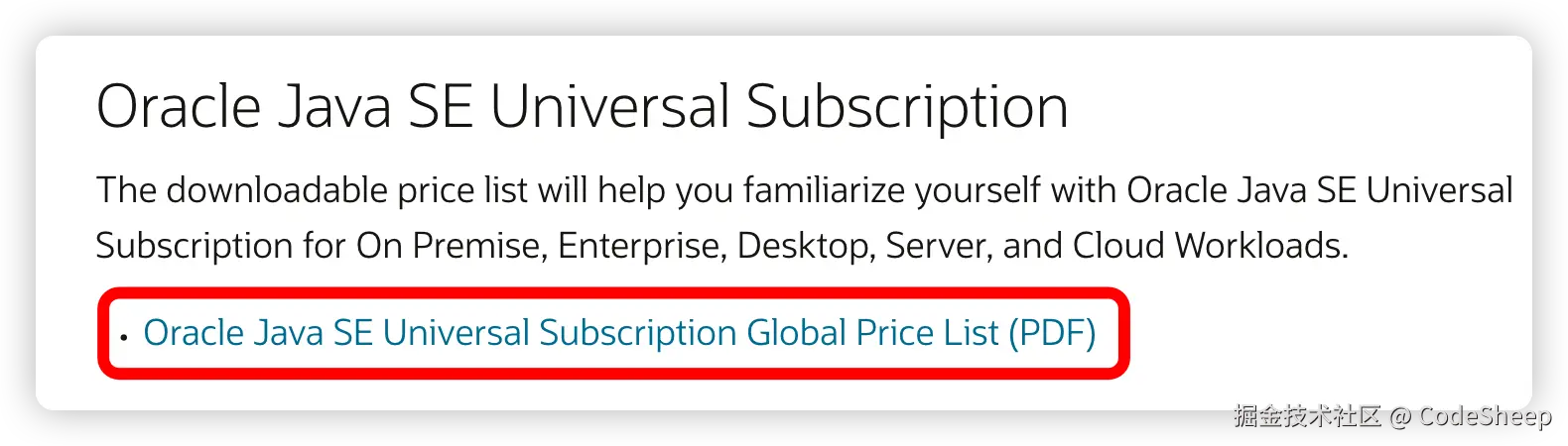 打开这个 PDF,在里面可以看到 Oracle 当时定的 Java SE 订阅价目表: