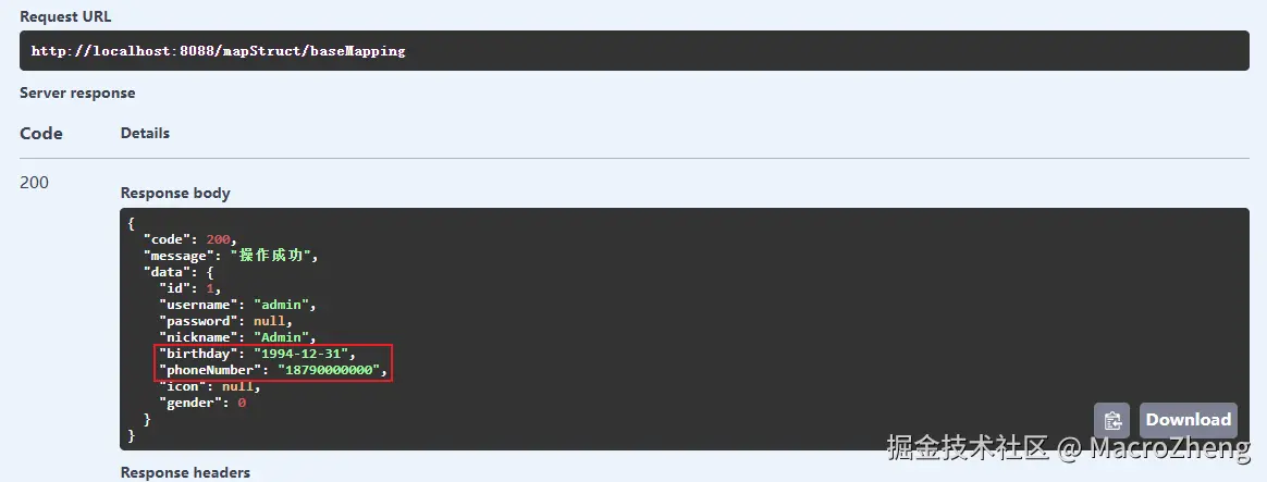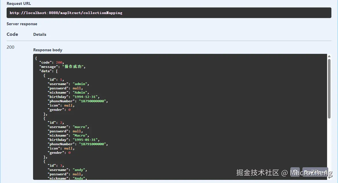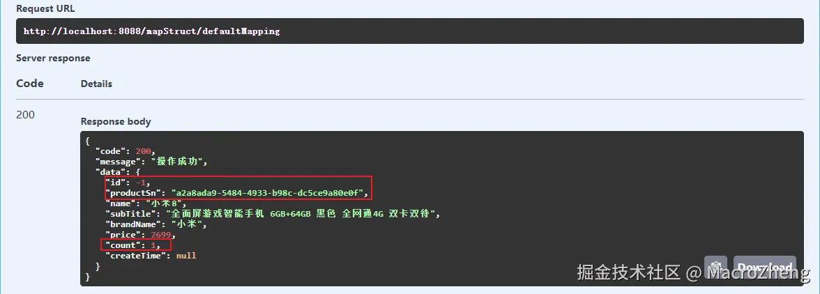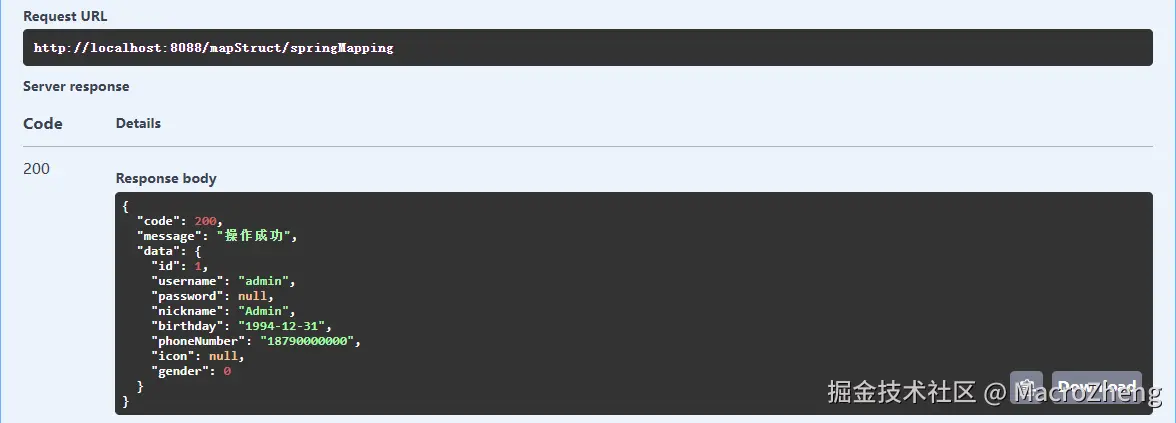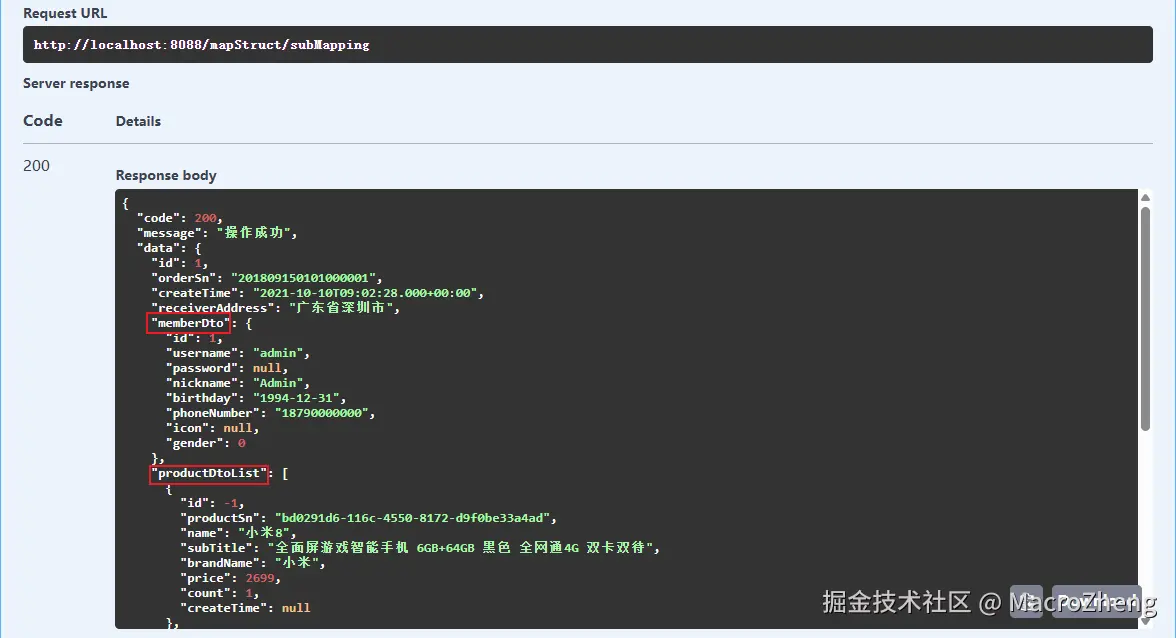 - 在Swagger中调用接口测试下,对象已经成功转换。