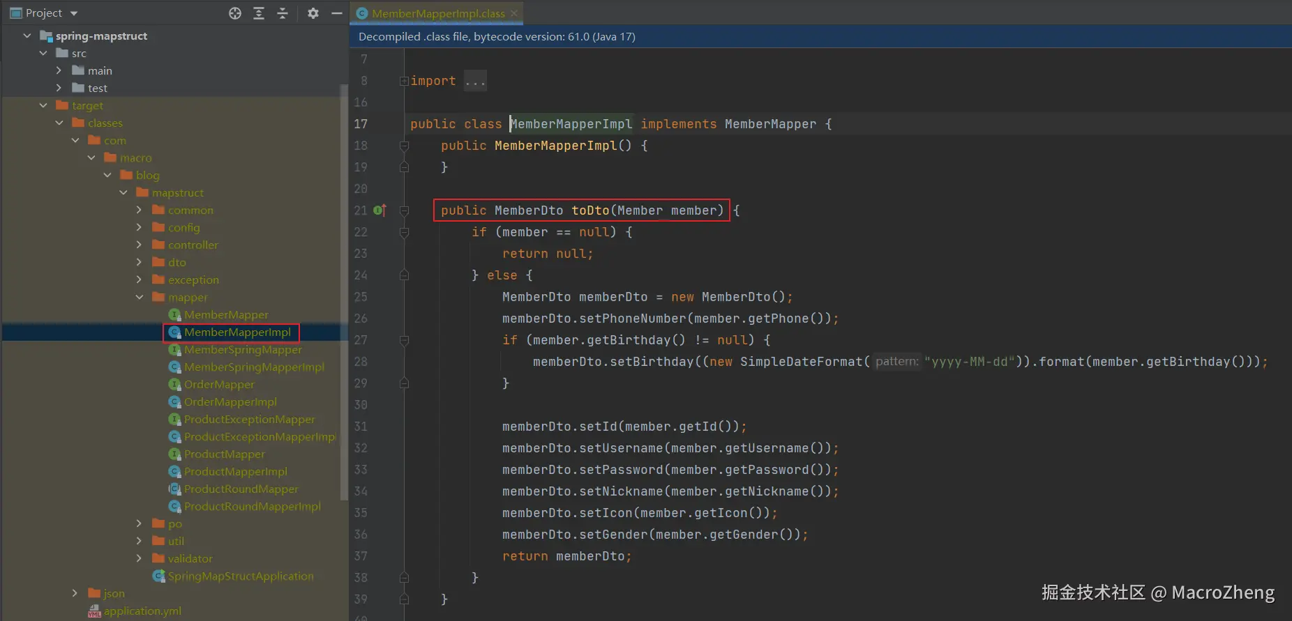 @Mapper和@Mapping等注解,在运行时生成接口的实现类,我们可以打开项目的target目录看下,可以和手写Getter、Setter说再见了!