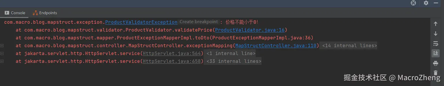 代码运行难免会出现异常,MapStruct也支持处理映射异常。
