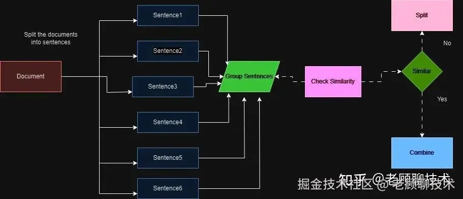 语义分块的核心思想是通过计算相邻句子的嵌入向量之间的相似度,识别语义上的断点,从而将文本划分为语义连贯的块。具体步骤包括: