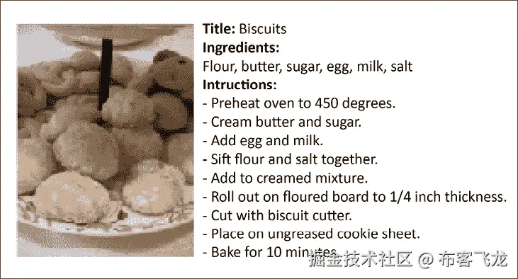 我们将讨论的最后一个例子与本书中较早的例子有关,即使用 GAN 生成图像的文本描述。这个问题的一个更复杂的版本是生成图像的结构化描述,该图像具有多个组件,例如图像中所描述的食物的配方。这个描述也更复杂,因为它依赖于这些组件(说明)的特定顺序才能连贯(图 13.12):