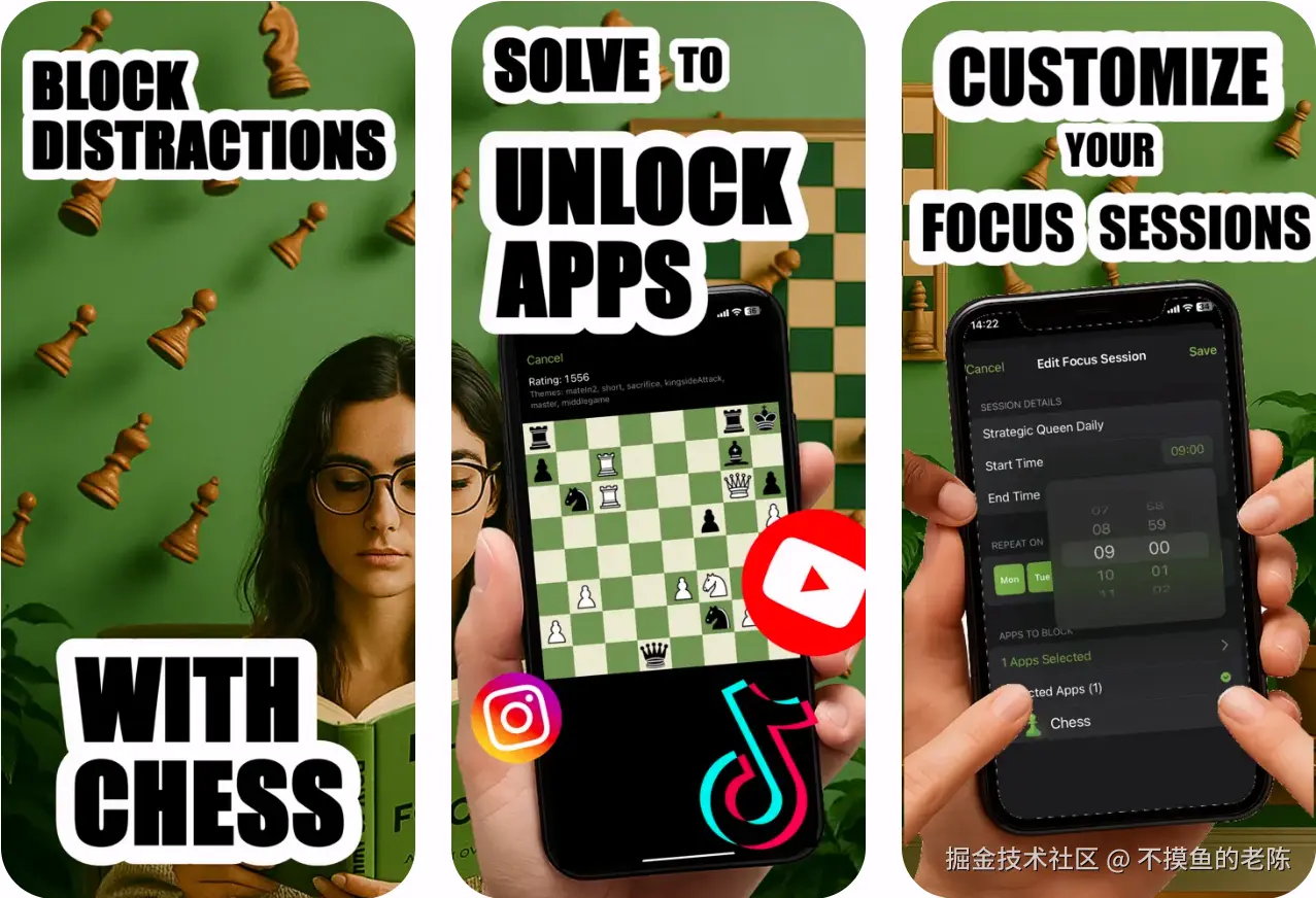 ChessLock是一款iOS应用,让用户解决国际象棋谜题来减少无效浏览时间。