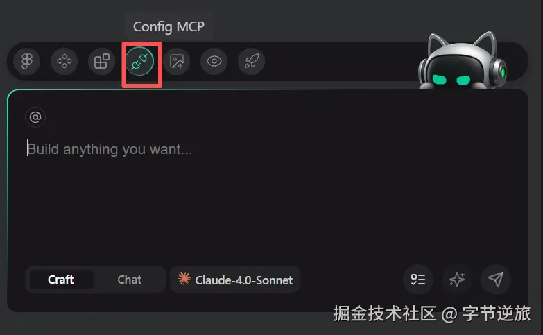在Craft模式下,倒是有个Config MCP的按钮。点击之后,看起来似乎可以添加MCP服务,但仅支持手动配置。
