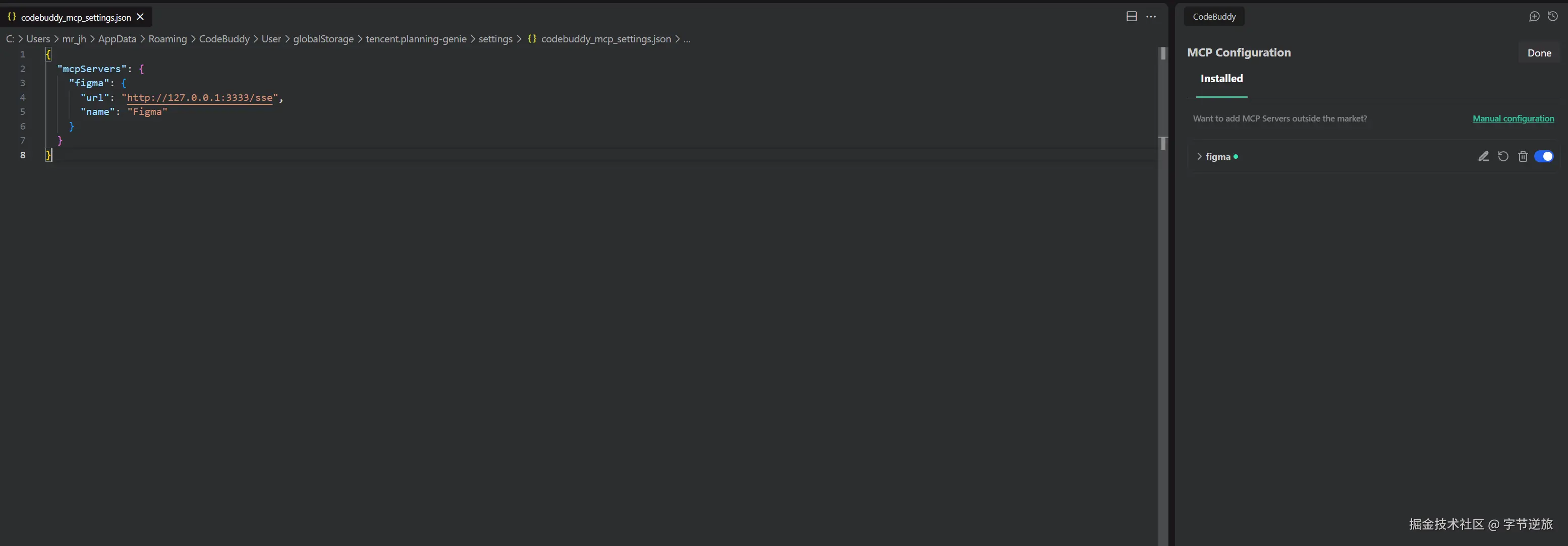 我根据本地服务的地址,修改了上面的配置。神奇的事情发生了,右边的服务列表里,Figma服务自动出现了!
