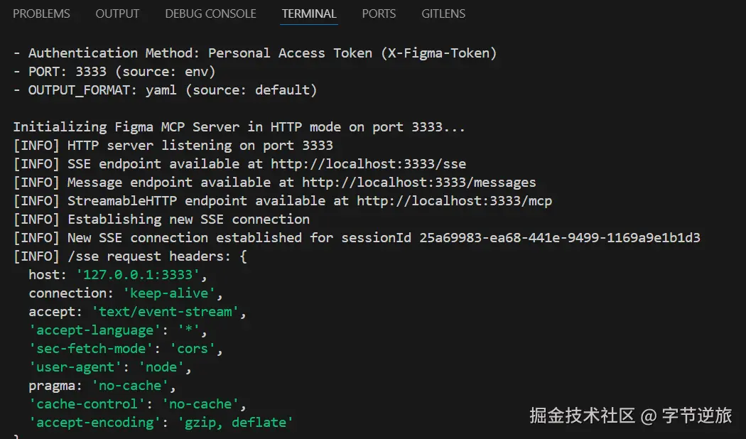 npm run dev命令,可以看到figma MCP Server本地服务已经启动,端口是3333。