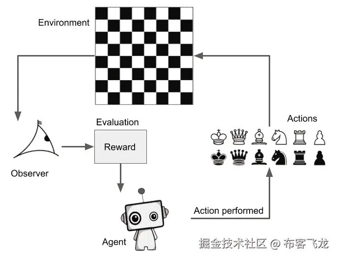 尽管我们在前面的定义列表中没有提到观察者,但必须有观察者或评估者才能产生奖励。 有时,观察者本身可能是一个复杂的软件,但是通常,这是一个简单的评估函数或指标。