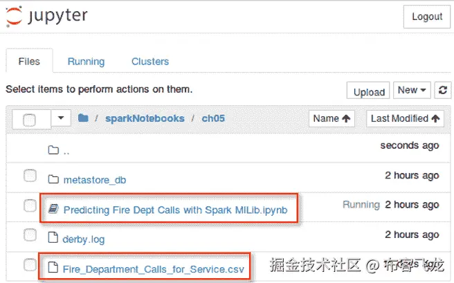 数据集被保存到与 Jupyter 笔记本相同的目录中,便于导入到 Spark 会话中。