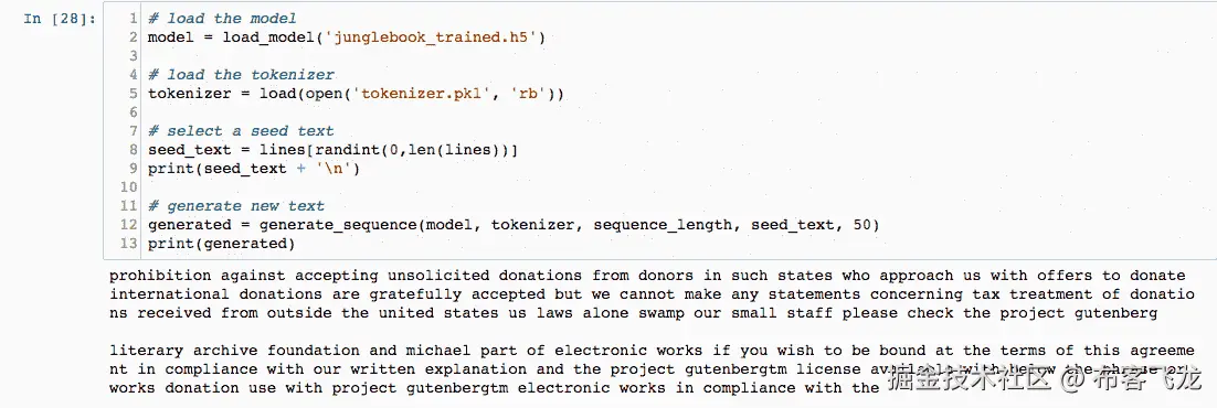 xtrain和ytrain进行拟合,批量大小设定为 10,训练 100 个 epochs。批量大小是定义一起训练的对象数量的设置。我们可以根据需要设置较低或较高的批量大小,但需要注意的是,批量数越少,所需的内存越多。此外,epoch 是衡量模型通过整个数据集的次数。最终,这些参数可以根据时间和内存分配进行调整。