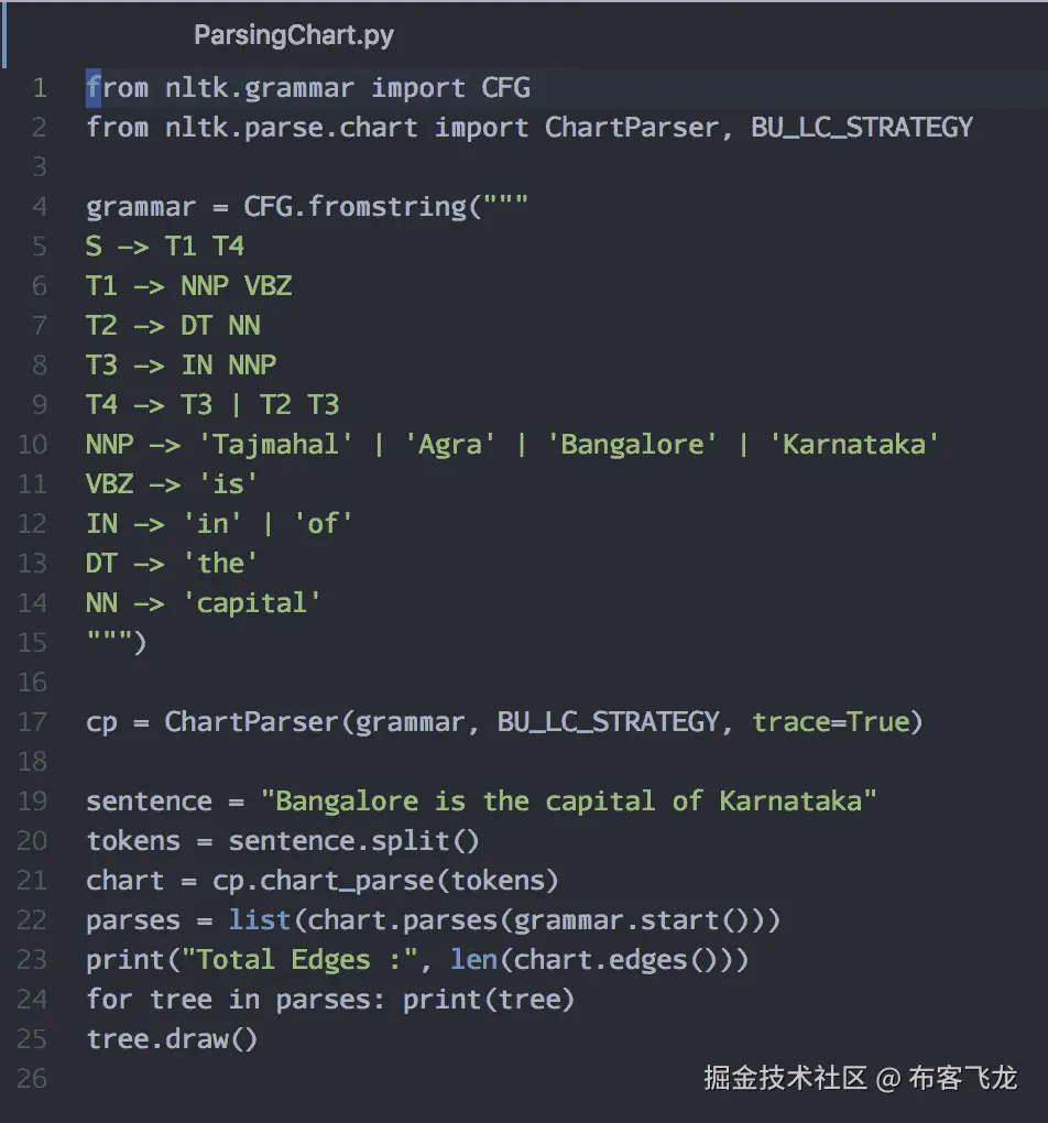 这是我们程序中的第一条指令,它指示 Python 解释器从磁盘加载模块到内存,并使得 NLTK 库在程序中可用: